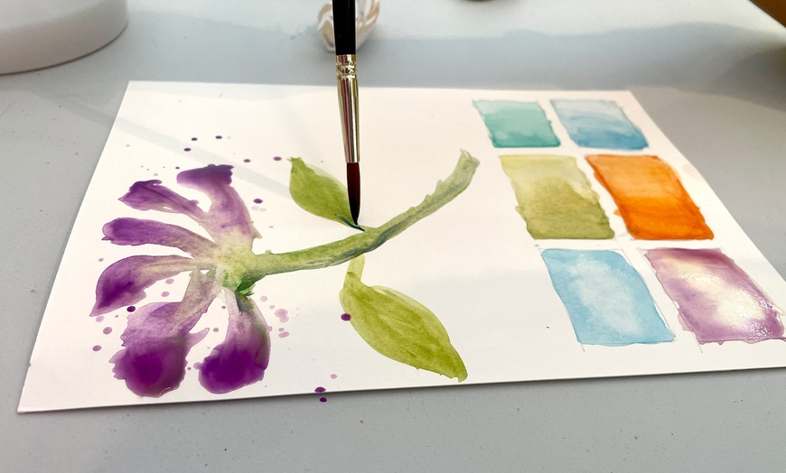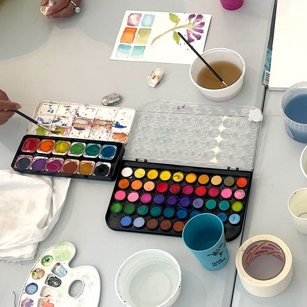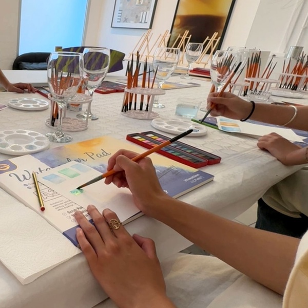El taller incluye una experiencia de acuarela de 2 horas y 45 minutos en una galería de arte contemporáneo en Barcelona, rodeados de un ambiente relajado, con vino ilimitado, alternativas como café, infusiones, agua o zumo, un brindis de bienvenida, introducción a los materiales y técnicas básicas, e inspiración guiada para dejar fluir el color.
