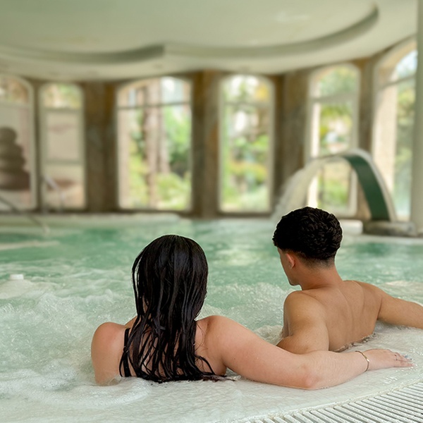 Una experiencia diseñada para disfrutar en pareja con el circuito de aguas termales a diferentes temperaturas que estimulan la circulación, relajan el sistema nervioso y eliminan toxinas acumuladas. Ideal para parejas que desean una desconexión profunda en un entorno de calma absoluta, compuesto por piscina dinámica, cascada, cuello de cisne, masaje a tres alturas, hidromasaje, baño turco y sauna.