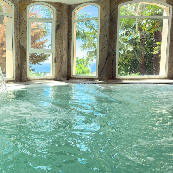 - Recorrido de 90 minutos por un circuito de aguas termales a diferentes temperaturas que ayudan a estimular la circulación, relajar el sistema nervioso y eliminar toxinas acumuladas