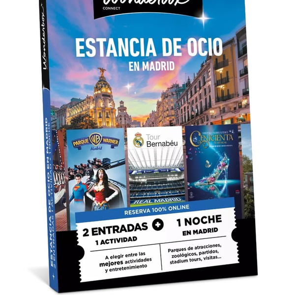 ¿Eres de l@s que le gusta conocer una nueva ciudad (o redescubrirla) de una forma un poquito diferente? Disfruta de una experiencia única durante un día en la capital española; Madrid. Wonderbox Connect te trae una forma única de pasar un día emocionante. Elige la actividad o visita que más te guste y descubre Madrid a tu manera. Tanto si te gustan los parques de atracciones como los deportes o la cultura, ¡seguro que hay una actividad para ti! Entre los más destacados se encuentran las entradas al espectáculo de El Rey León o Wicked, al Parque Warner y para l@s más futboleros Real Madrid Tour Bernabéu.