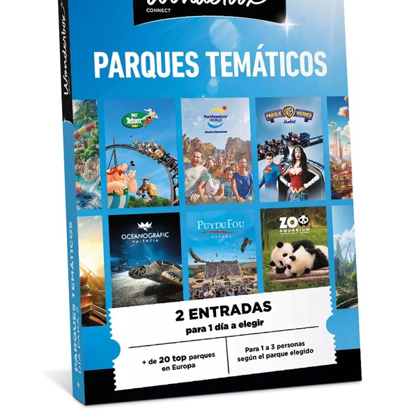 Wonderbox Connect te invita a vivir una experiencia única llena de emoción y magia en los mejores parques temáticos de Europa. Con alianzas con más de 90 partners exclusivos, cada visita será un recuerdo inolvidable. Personaliza tu aventura eligiendo fechas y opciones que se adapten a tus gustos, desde atracciones trepidantes hasta eventos especiales y exhibiciones únicas. Con una validez de 27 meses, podrás organizar tu escapada ideal sin presiones. ¡Es la forma perfecta de regalar momentos extraordinarios y vivir emociones intensas con los que más quieres!