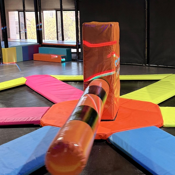Haz temblar el puente y lucha como gladiador, lanza a tu contrincante a un pozo de espuma o salta todo lo alto que puedas y aterriza en una colorida piscina de suavidad. -