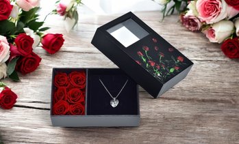 Colgante con forma de corazón en joyero con 6 rosas rojas naturales...