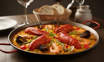 Para 2: menú mediterráneo con 3 entrantes, 1 arroz, 1 postre y 2 bebidas